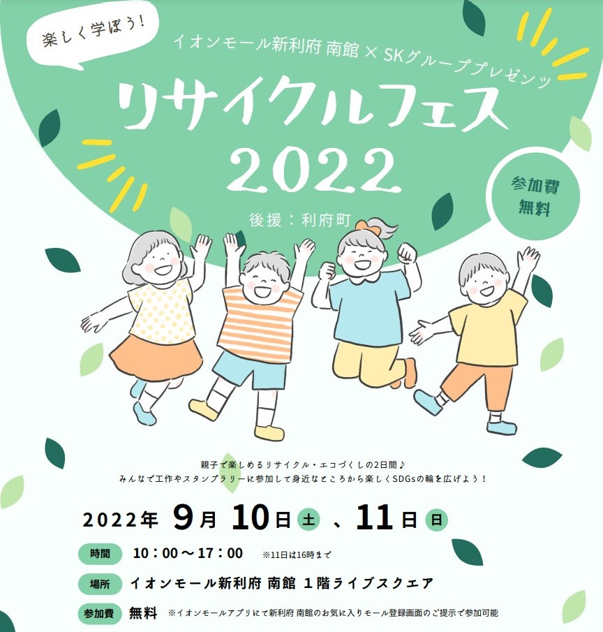 SKグループ(以下、「SK」)と、イオンモール新利府(以下、「当モール」)は共同で、「リサイクルフェス 2022」を開催します。