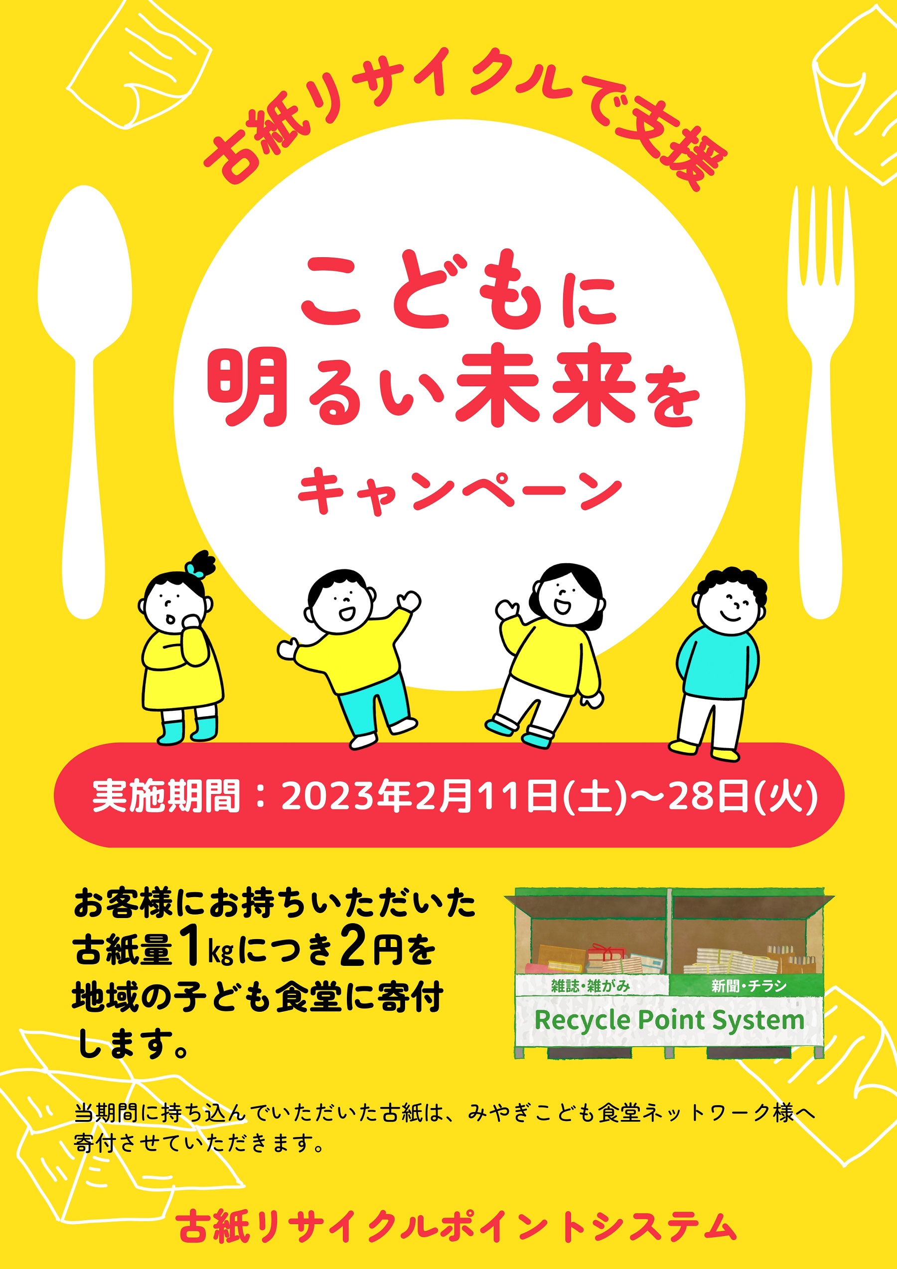 2023年2月11日~2月28日の期間中に集まった古紙の売上金の一部を寄付いたします。