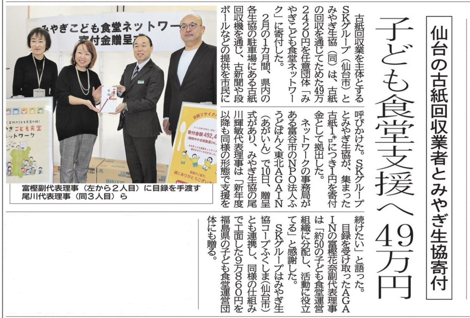 先日の子ども食堂応援キャンペーンの記事が河北新報に掲載されました。