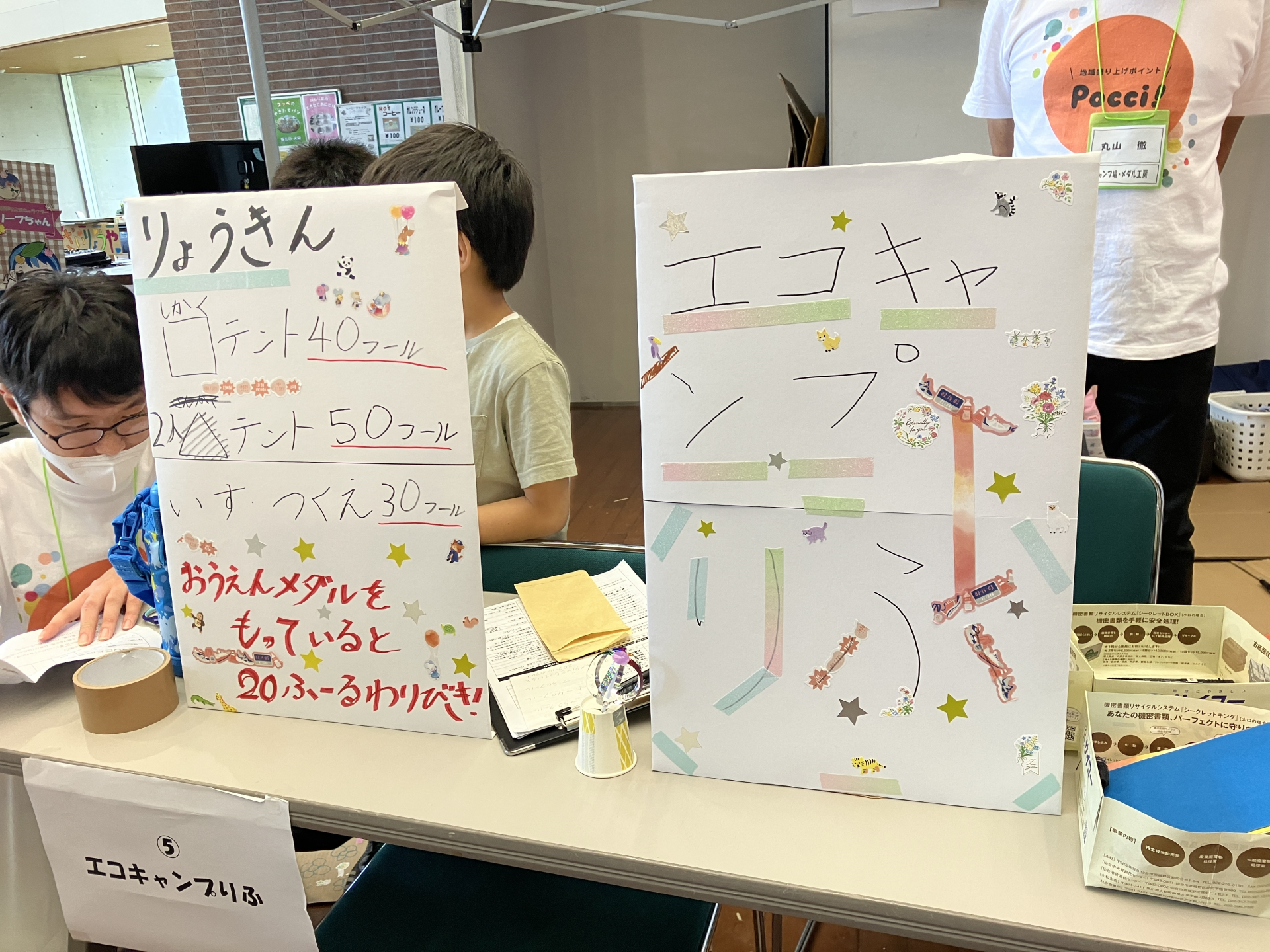 応援したい人にメダルを届け、そのメダルはテントの割引券になるという