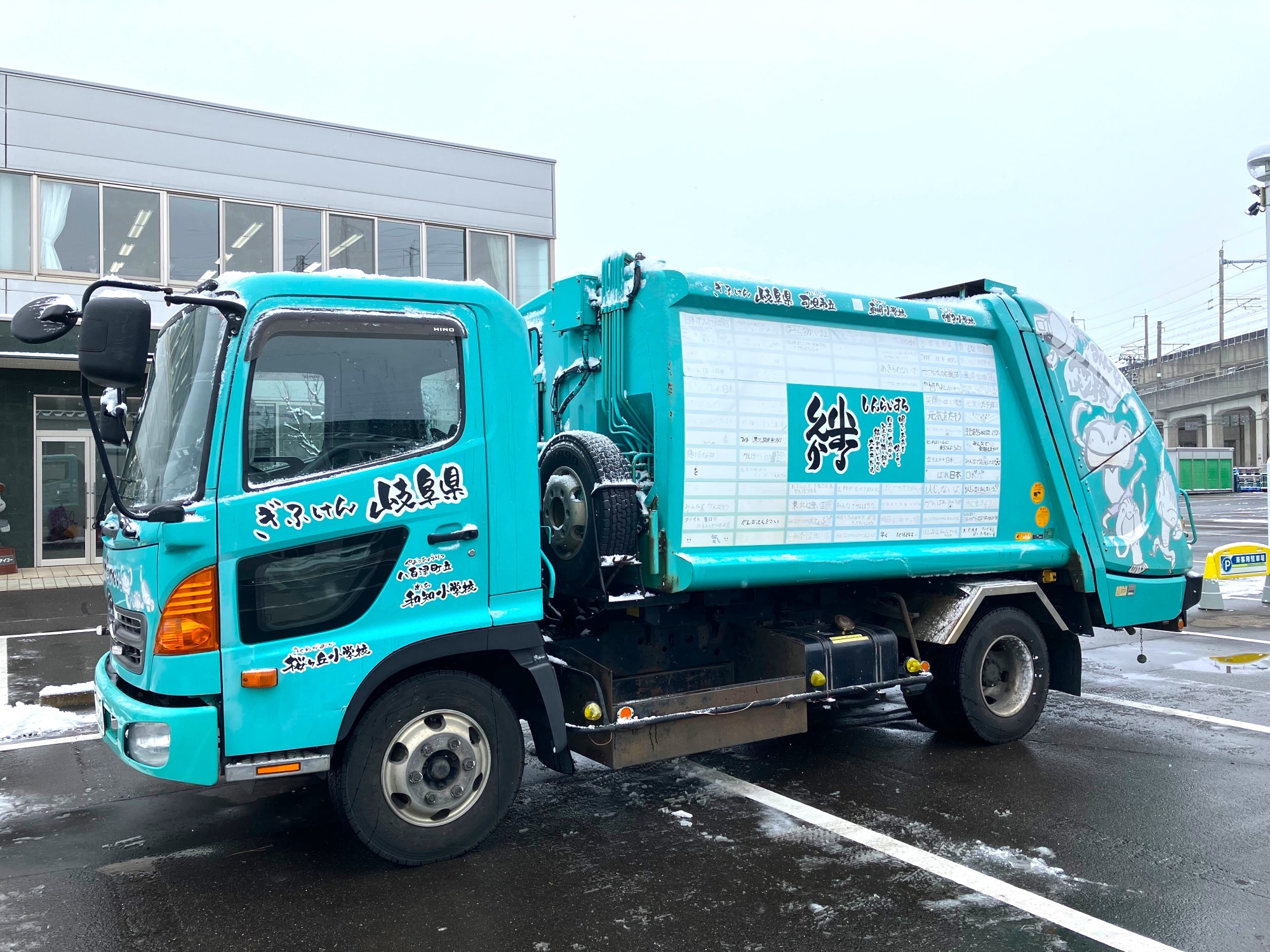 車体には岐阜県の小学生160名からの応援メッセージや「絆」の文字などが描かれています。このパッカー車によってSKグループは被災地の廃棄物処理を迅速に行うことができただけでなく、大きな感動と勇気をもらいました。