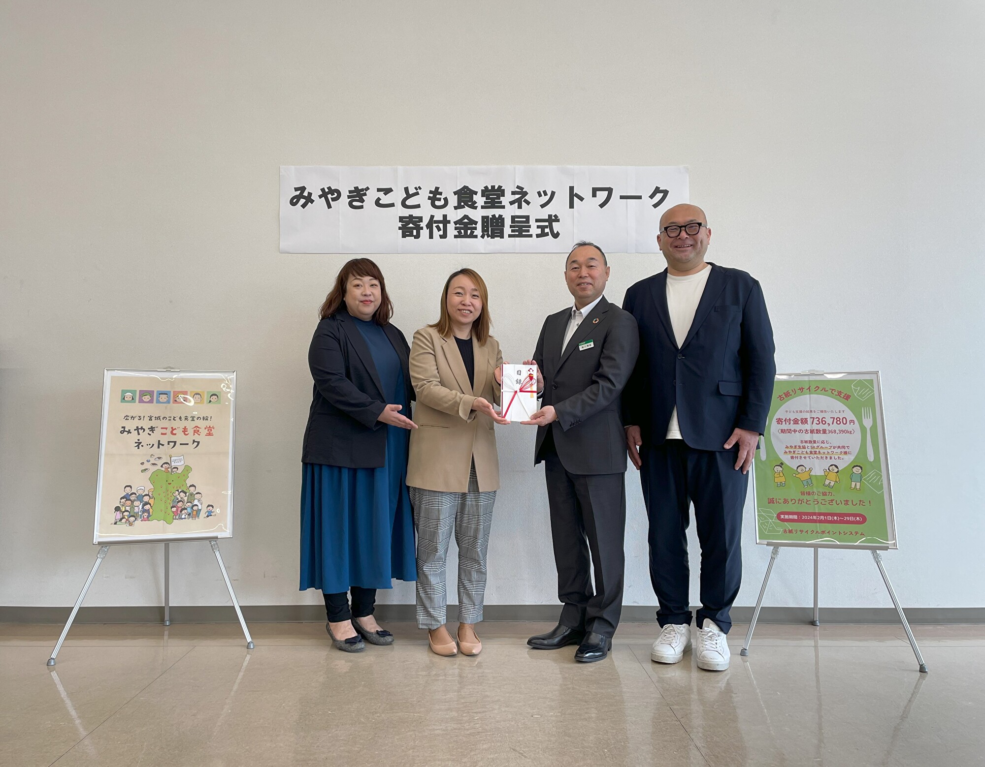 みやぎ生協33店舗、コープふくしま8店舗に設置してあるリサイクルステーションの売り上げの一部をみやぎこども食堂ネットワーク様、福島市子ども食堂NET様へ寄付するキャンペーンを実施いたしました。