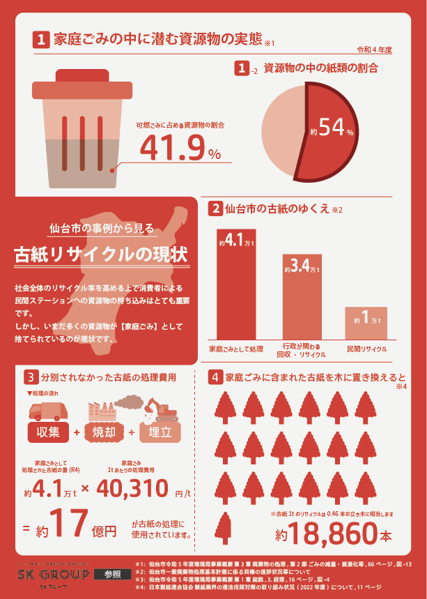 SKグループ(株式会社サイコー、株式会社SKトレーディング、株式会社ステップスナイン、株式会社SKホールディングス)は、国立大学法人東北大学(注1)、株式会社4510デザイン事務所(注2)と共に行っている古紙のリサイクル促進に向けた共同研究「変動リサイクルポイント・システム実証実験」について、実証実験(第1弾)の好結果を受けて、2024年10月12日より実験規模を拡大し、実証実験(第2弾)をスタートします。