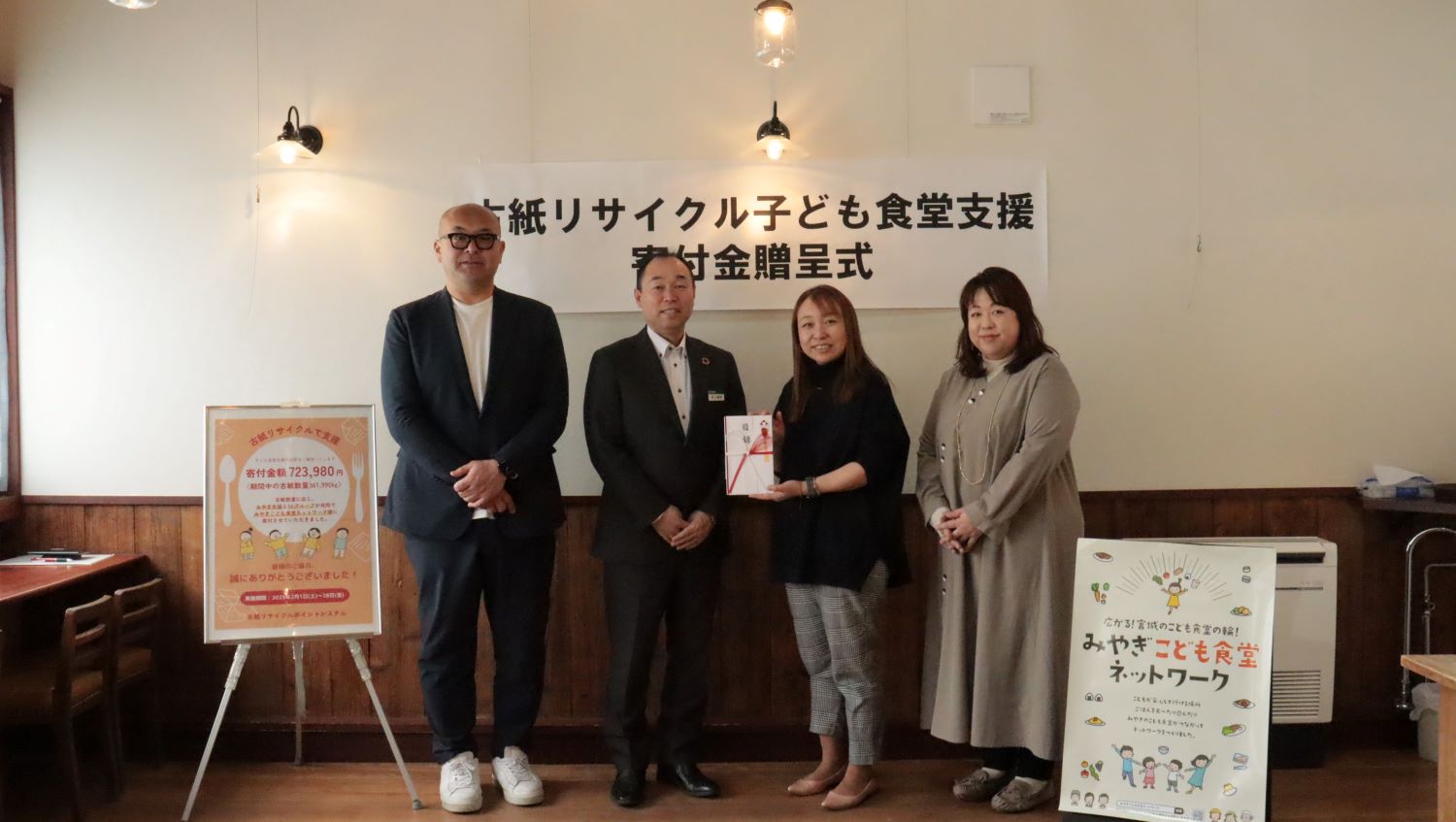 SKグループは、みやぎ生協共同組合様・コープふくしま様と共同で、みやぎ生協33店舗、コープふくしま8店舗に設置してある古紙リサイクルポイントシステムの売り上げの一部を宮城・福島の子ども食堂に寄付する取り組みを行いました。