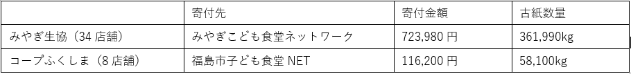 (みやぎ生活協同組合・コープふくしま:1円/kg、SKグループ:1円/㎏)