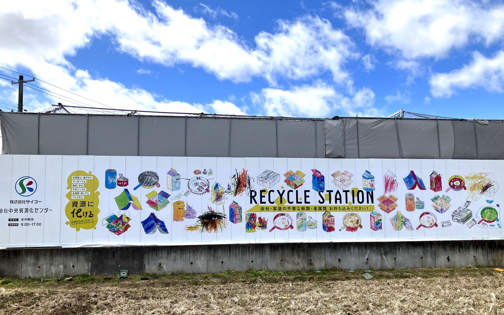 そんなSKグループ社員の家族も一緒に制作した新壁画、「サイコー中央資源化センター」にお立ち寄りの際、またお近くを通る際はぜひご注目ください。