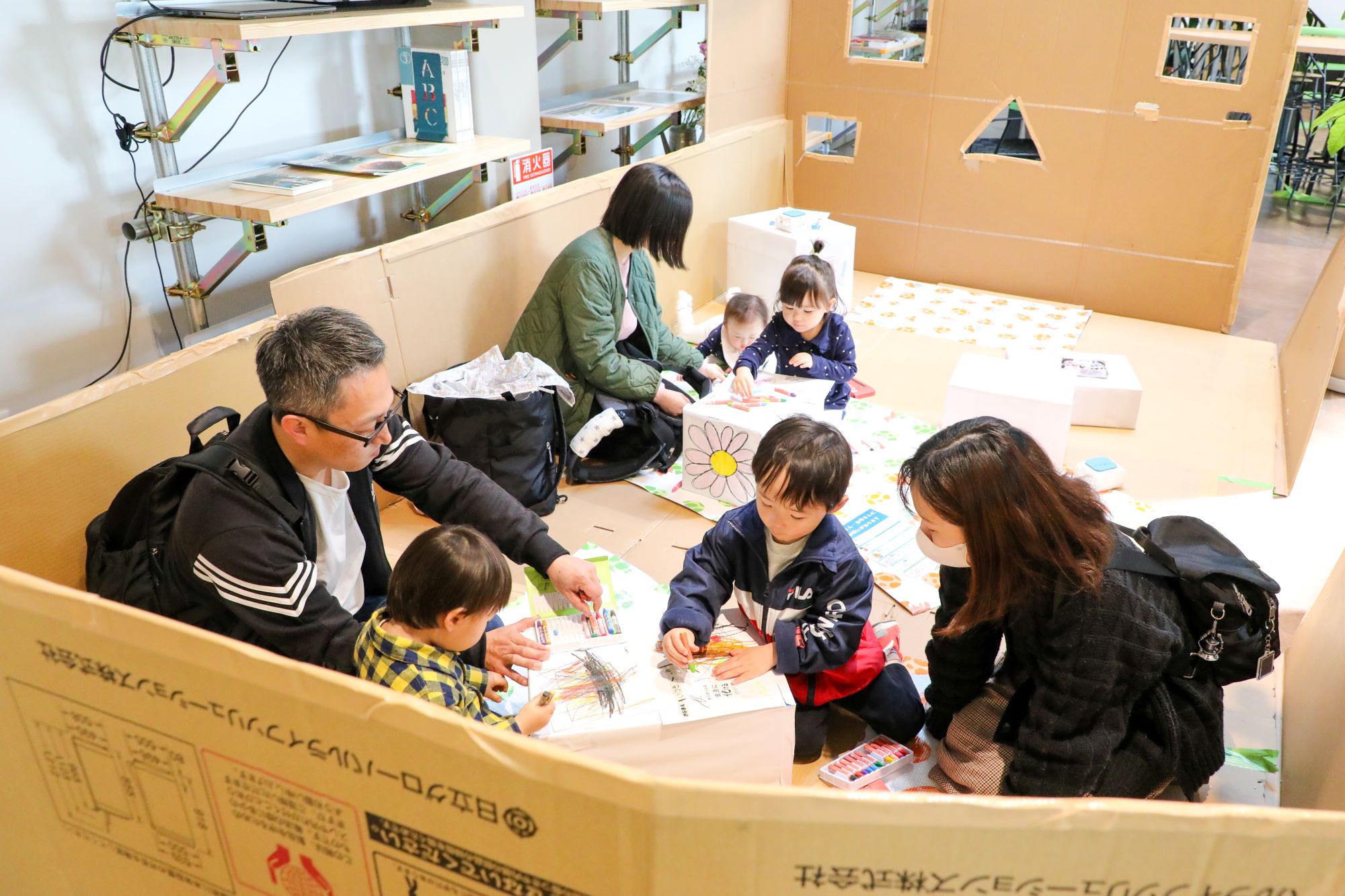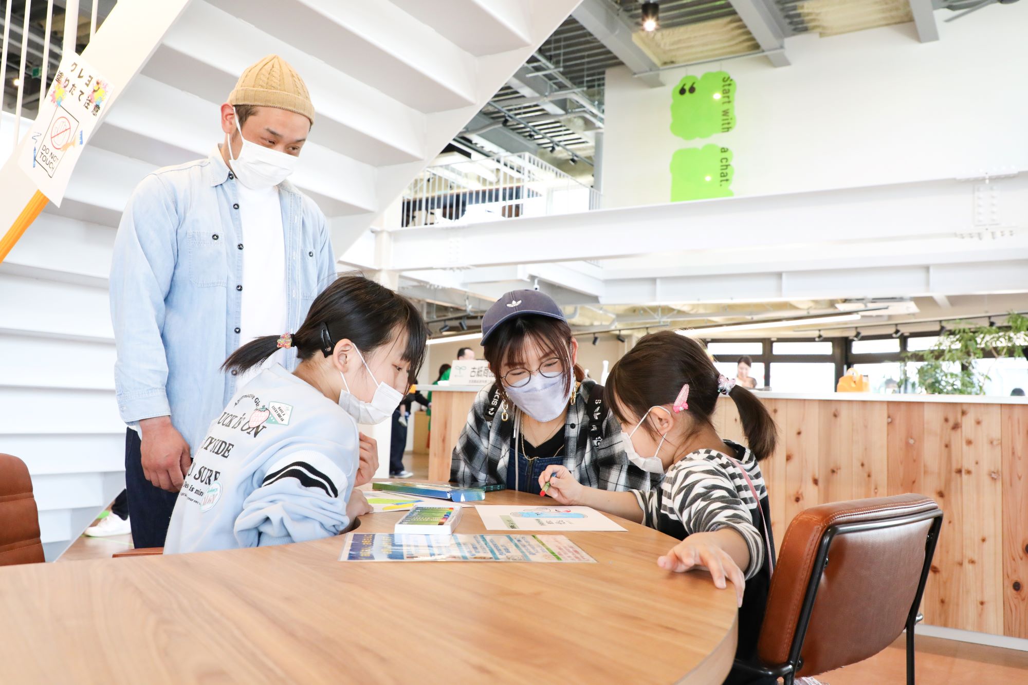 お子さんたちには、普段お父さんやお母さんが仕事をしている職場を見学してもらいつつ、ぬりえやレクリエーションを楽しんでもらいました。