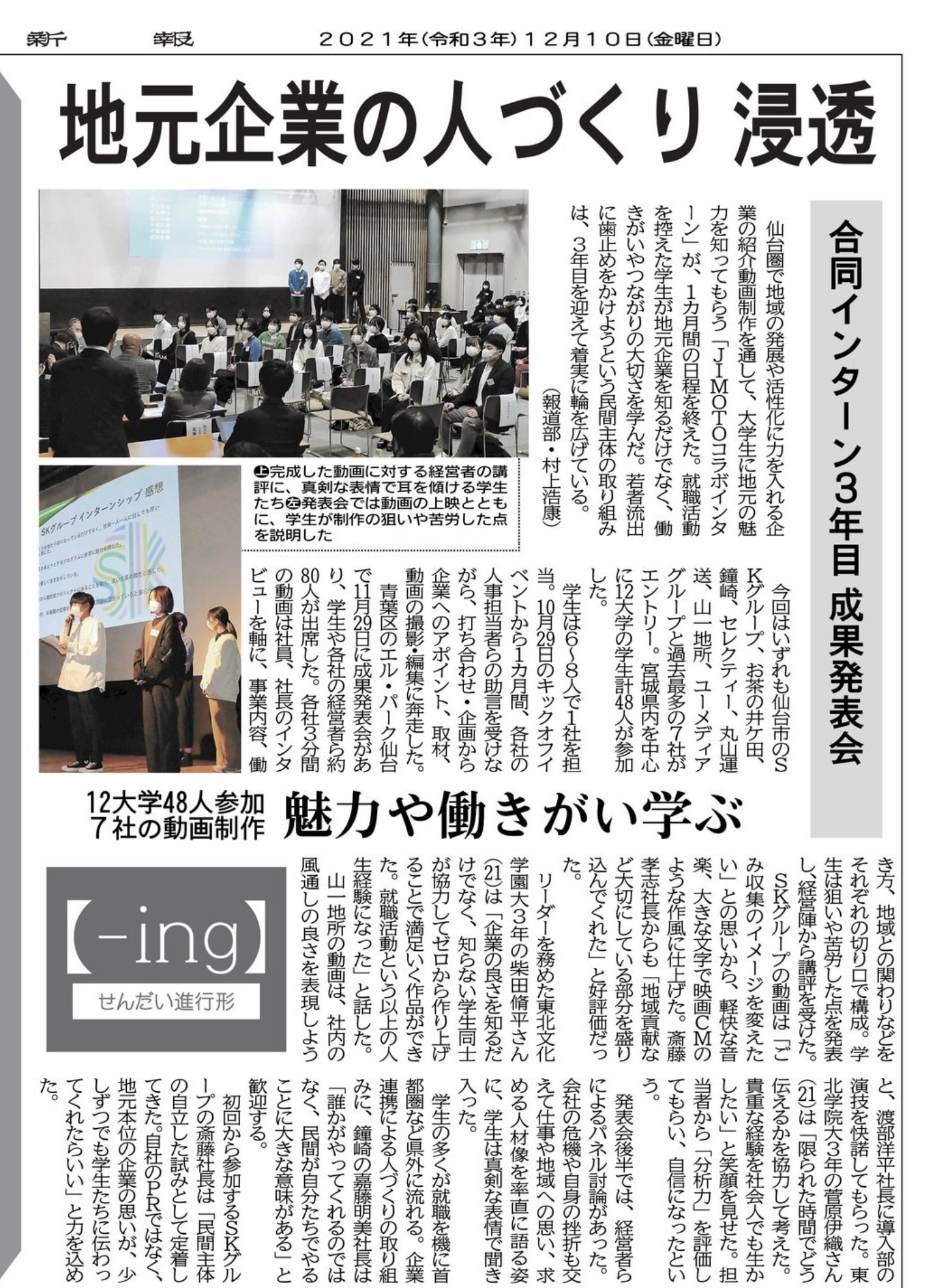 新聞記事には、成果発表会の様子や、学生のインタビューについて