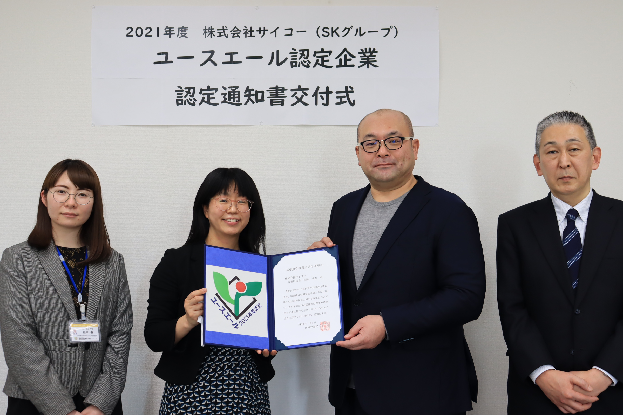 この度、サイコー(SKグループ)が宮城県のユースエール認定企業として認定されました。
