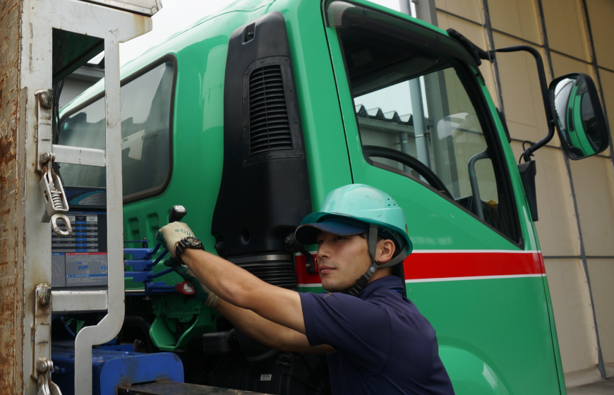 トラック(主に中型車)を運転し、段ボールなどの古紙や産業廃棄物、一般廃棄物を回収する業務です。回収先は倉庫や一般企業、自治体などです。回収する品目によって荷卸しする場所が変わり、古紙や産業廃棄物であれば当社資源化センター、生ごみなどの一般廃棄物であれば各種自治体の焼却工場などになります。 業務に必要な免許・資格(大型自動車・中型自動車免許など)は必要に応じて会社負担で取得していただきます。