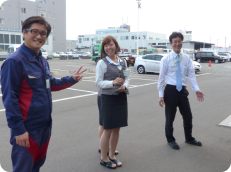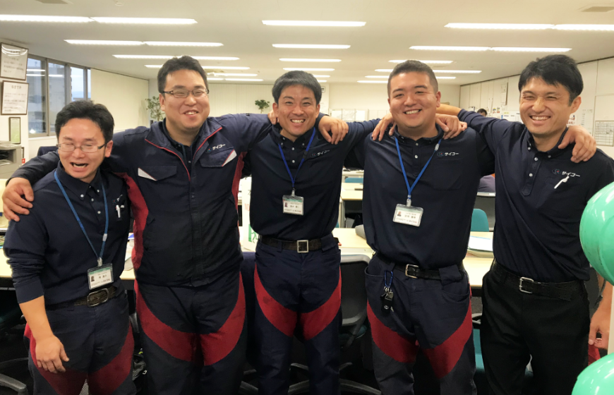 サイコーの一番の魅力はなんと言っても「社員」。グループ全体で大切にしている明るいあいさつが飛び交い、日々和気あいあいと仕事をしています。社内には社員の良いところを投書できる仕組みがあり、「廃棄物の量が多く回収に時間がかかっているとき、別の現場担当の同僚がトラックで応援に駆けつけてくれた」「事務処理で残業になりそうなときチームのメンバーが手分けして作業してくれた」などのエピソードもよく聞きます。疲れたときでも笑顔で労いあえる、社員同士のまごころこもった交流が自慢です。