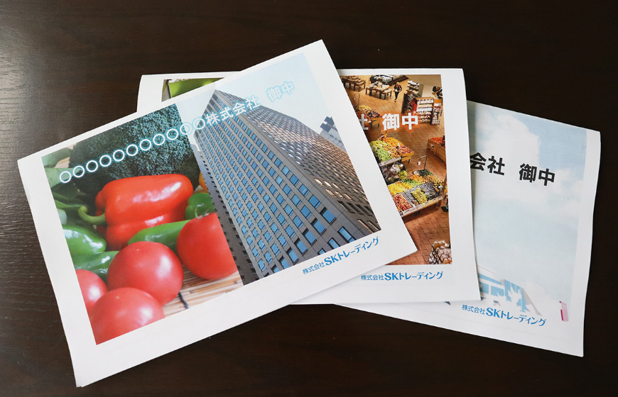 SKトレーディングでは、それぞれが抱える課題解決のパートナーとして「オーダーメイドのご提案」を大切にしています。商談の際使用する提案書は営業担当自らが作成しますが、なんとお客様によって内容はもちろん、デザインから違うんです。